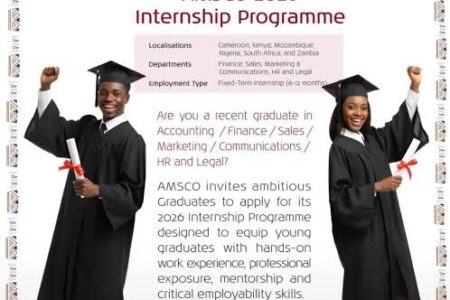 Young African graduates aiming to build careers in development, enterprise support and corporate advisory services can now apply for the AMSCO 2026 Internship Programme. This programme offers hands-on experience working with African enterprises and development partners focused on job creation, business growth and economic transformation. The African Management Services Company (AMSCO), originally established by the … Continue reading Call for Applications: AMSCO Internship Program for Young African 2026