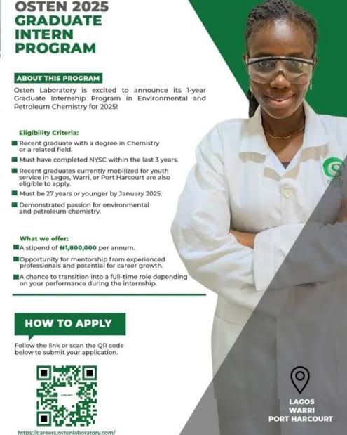 Osten Laboratory Graduate Intern Program 2026Osten Laboratory is an industrial servicing company that supports the operation of Oil and Gas companies, Power, Healthcare, Manufacturing, Commodities and Government. Our core activities include…