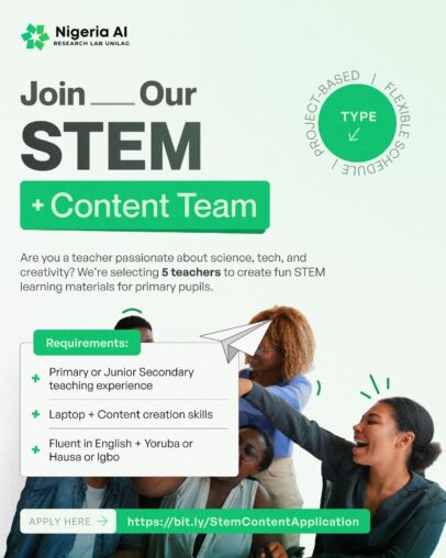 Are you passionate about teaching and creating learning content for children in English and at least one Nigerian language – Yoruba, Hausa, or Igbo? We’re looking for dedicated teachers to develop engaging online STEM materials for pupils from Primary School to JSS3 across Nigeria.